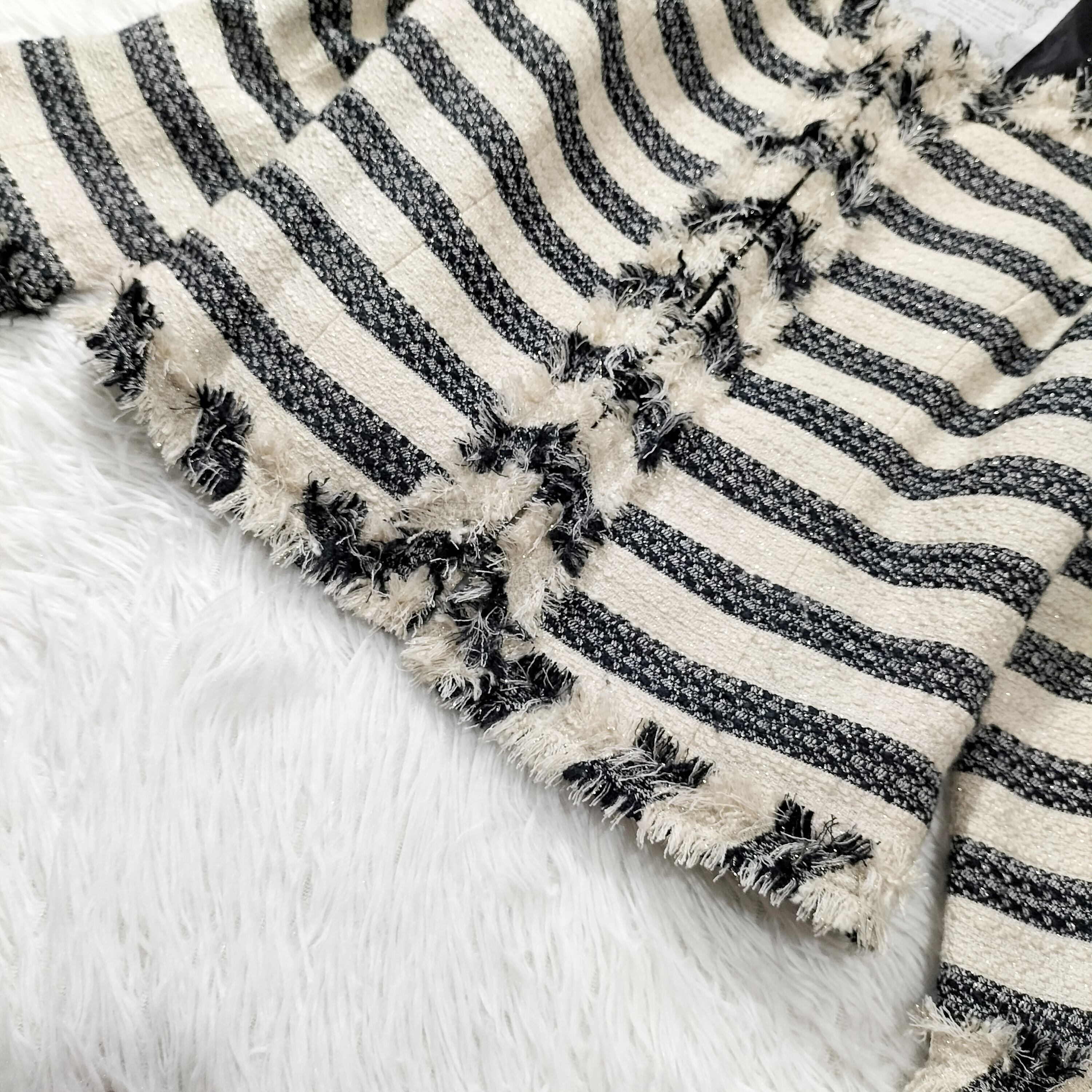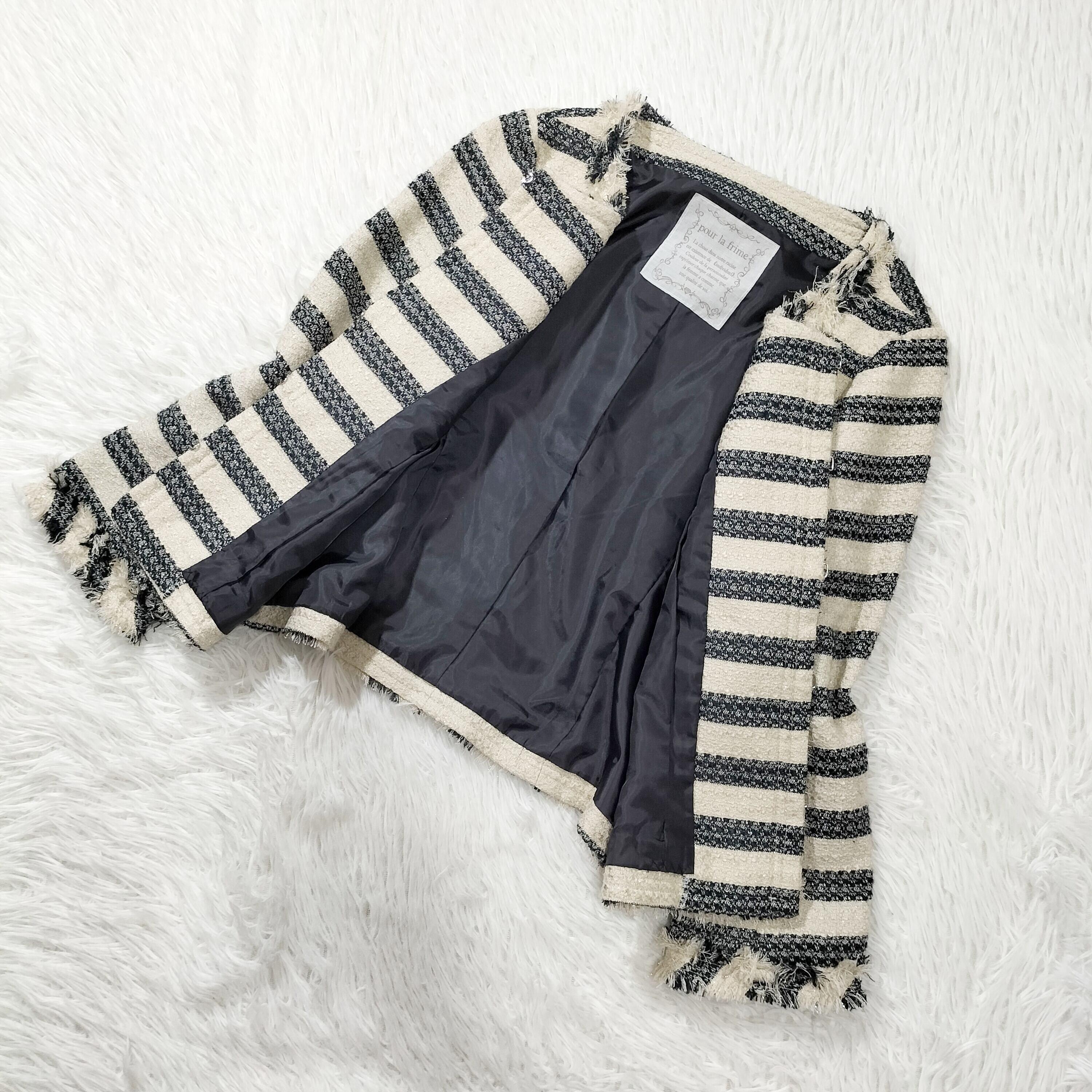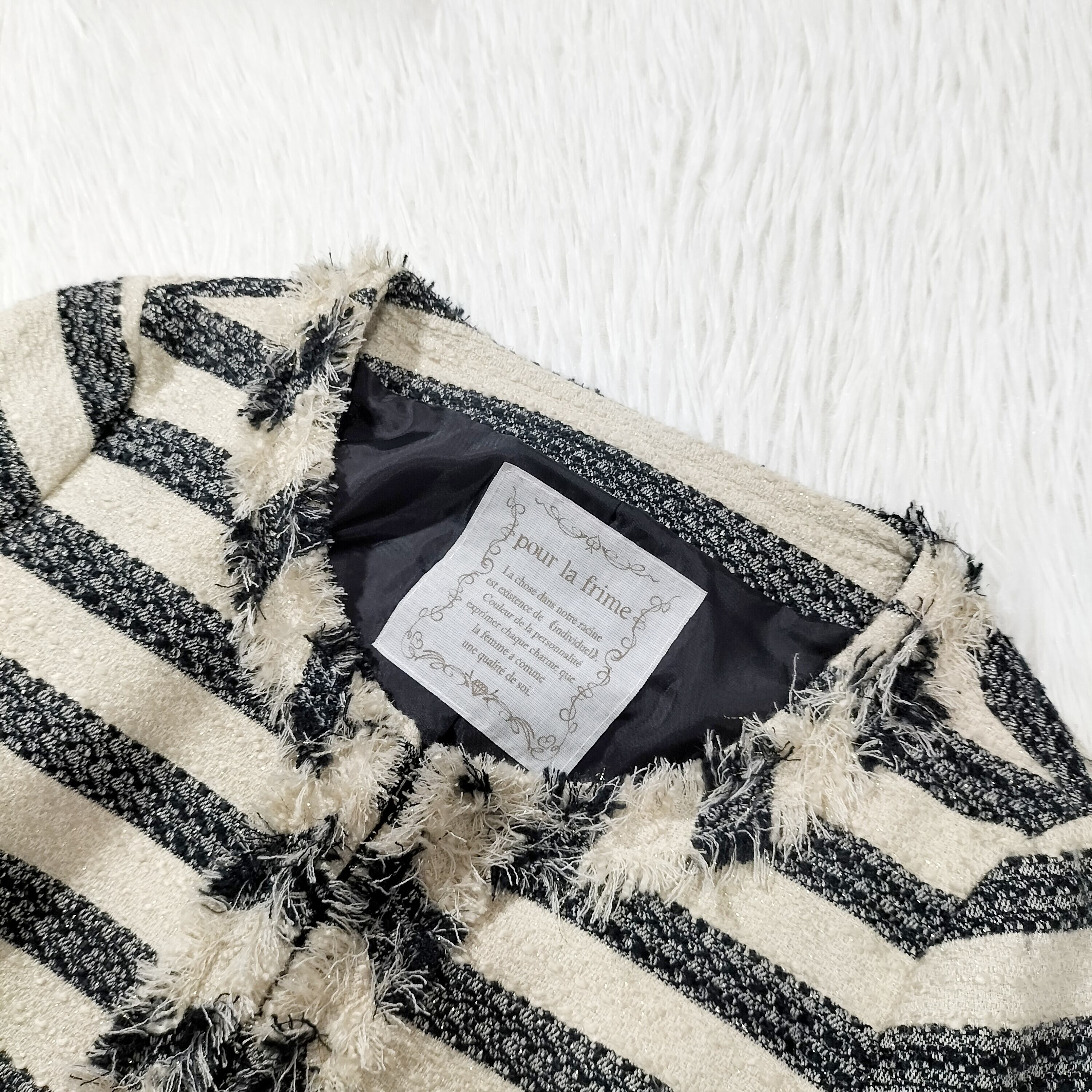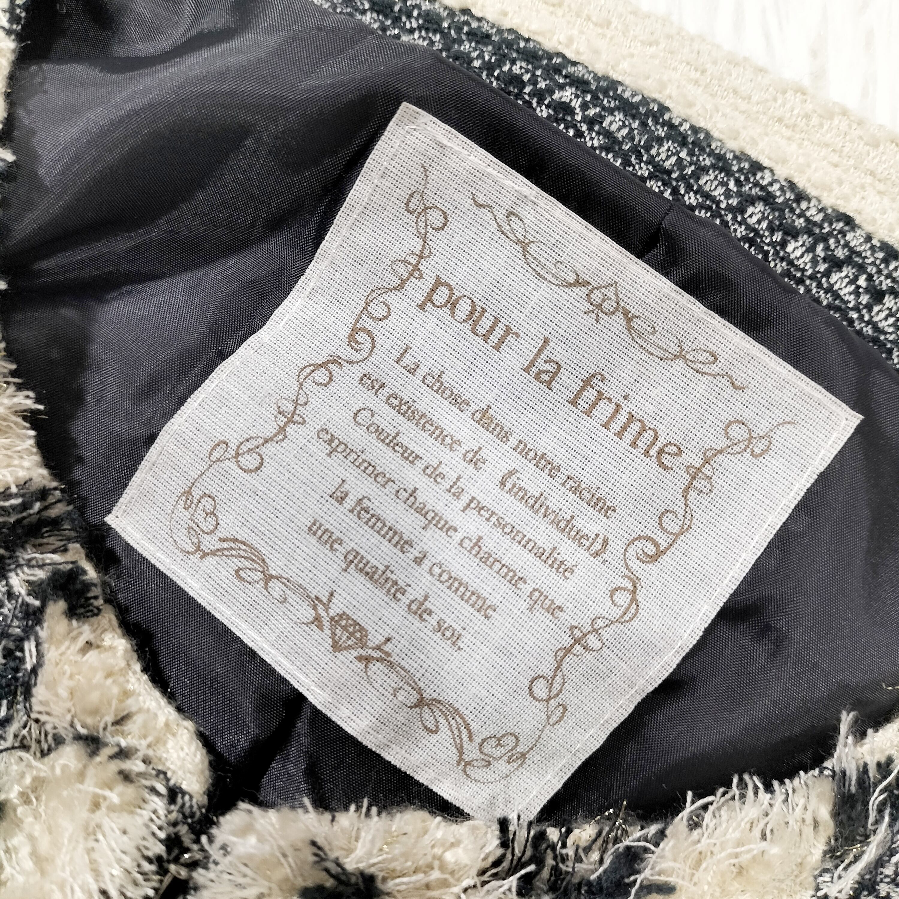 pour la frime プーラフラーム ノーカラージャケット ボーダー レディース ウール混 ラメ入り Mサイズ