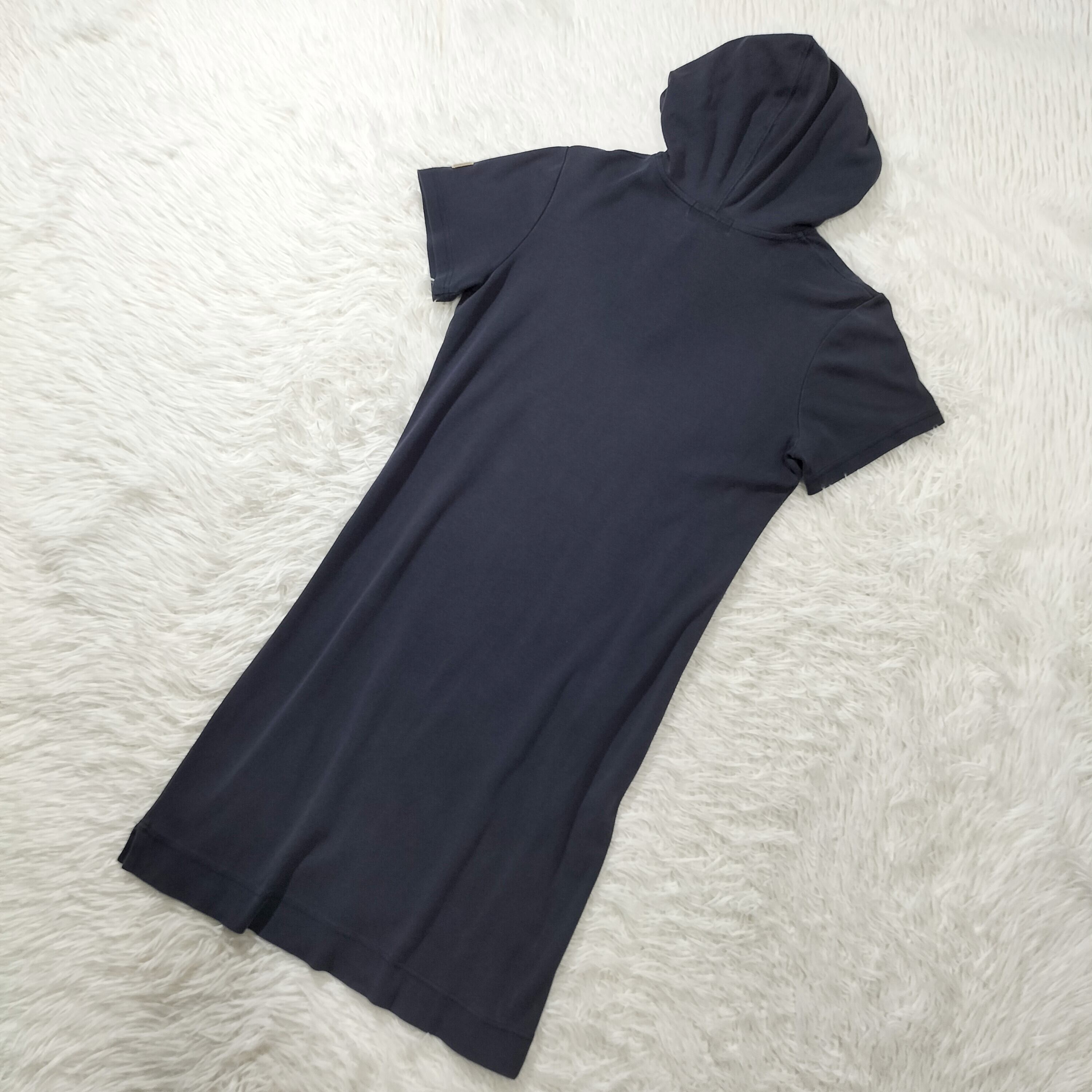 カジュアルなデザインながらも、ワンピースならではの女性らしいシルエットが魅力です。ロング丈なので、体型カバーにも最適!さらに、フード付きでリラックス感も演出できます。ネイビーカラーはどんなスタイリングにも合わせやすく、機能的でありながらもおしゃれさも兼ね備えています。