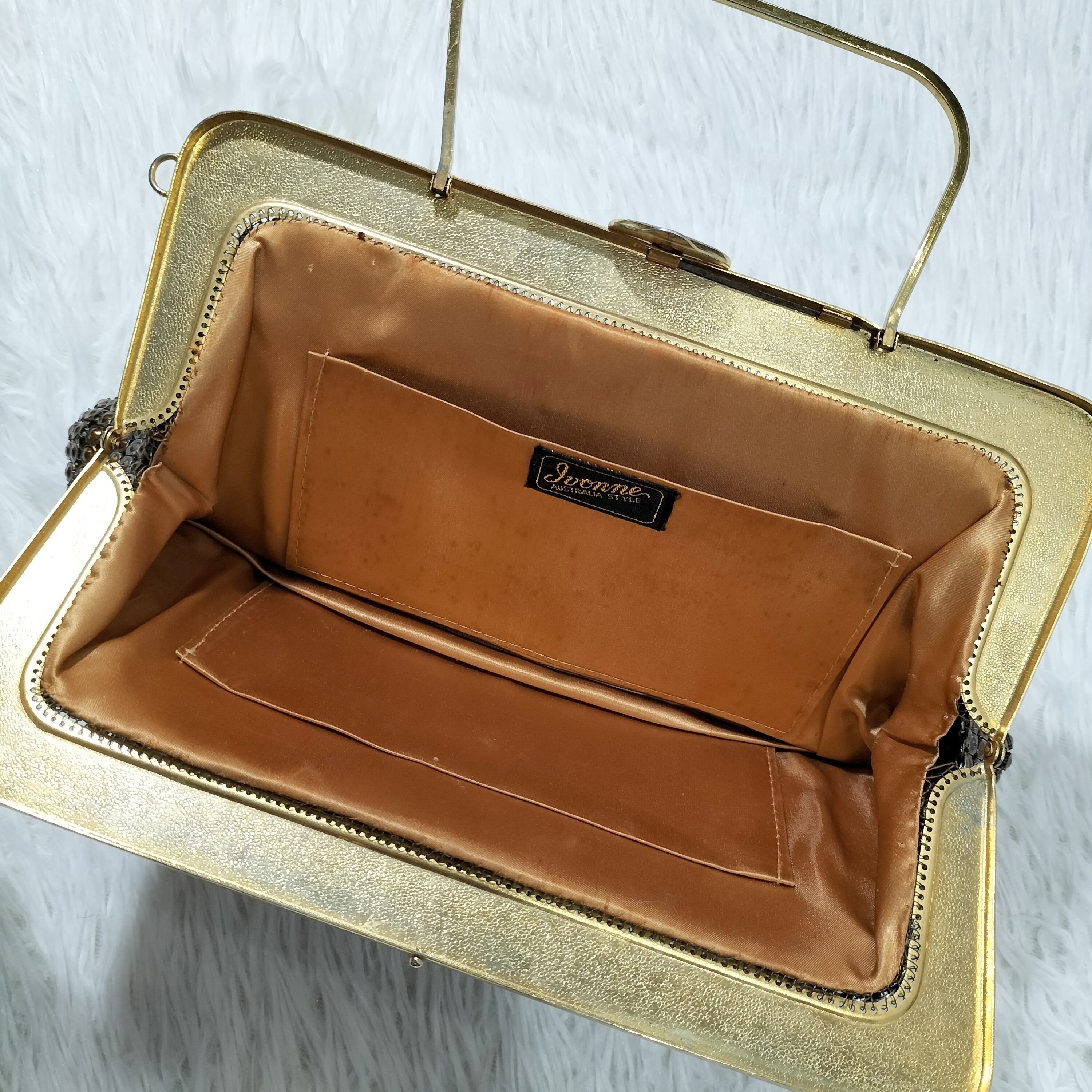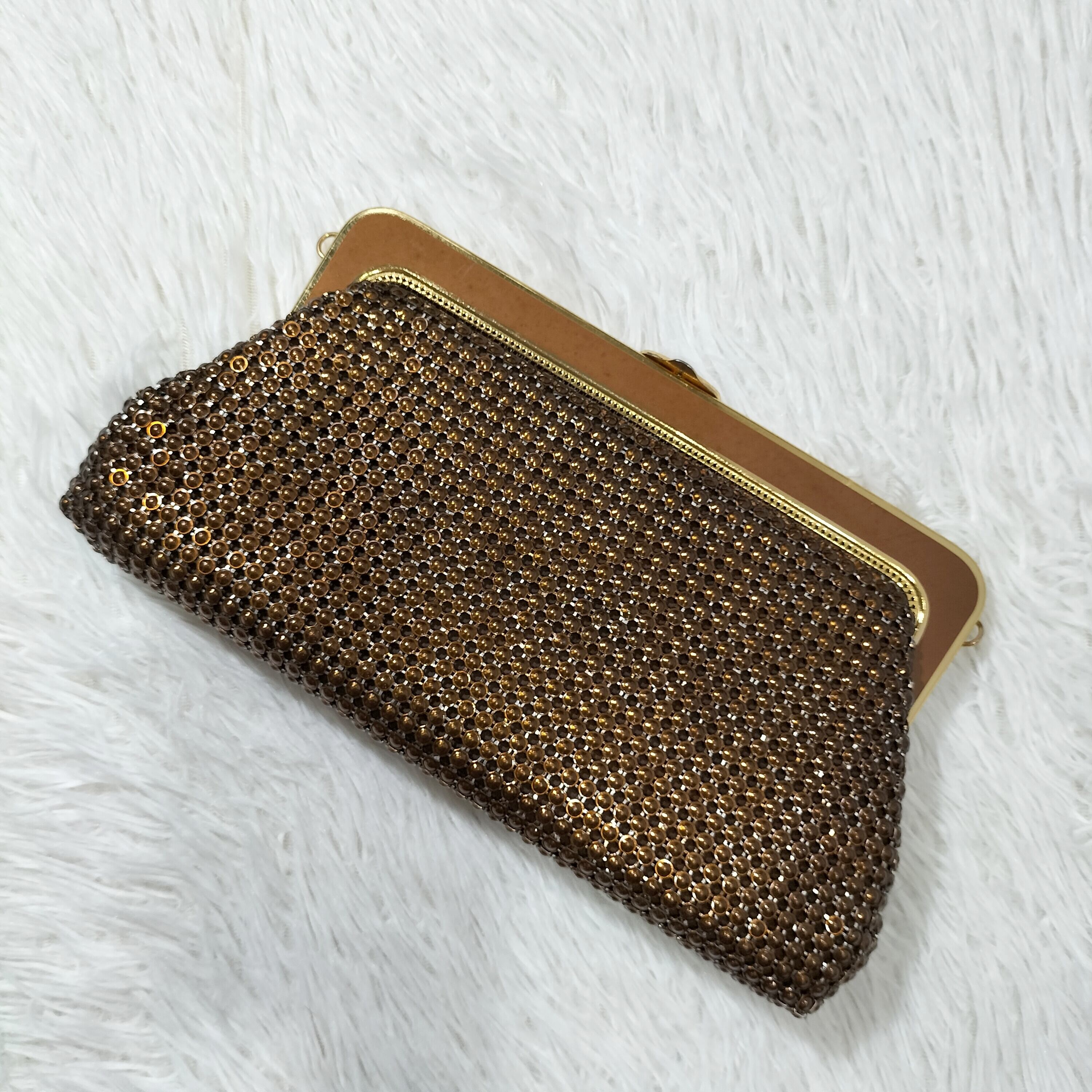 上品なデザインが特徴のビンテージアイテムです。セレモニーやお呼ばれ、二次会などの特別な場にぴったりのレディースバッグです。