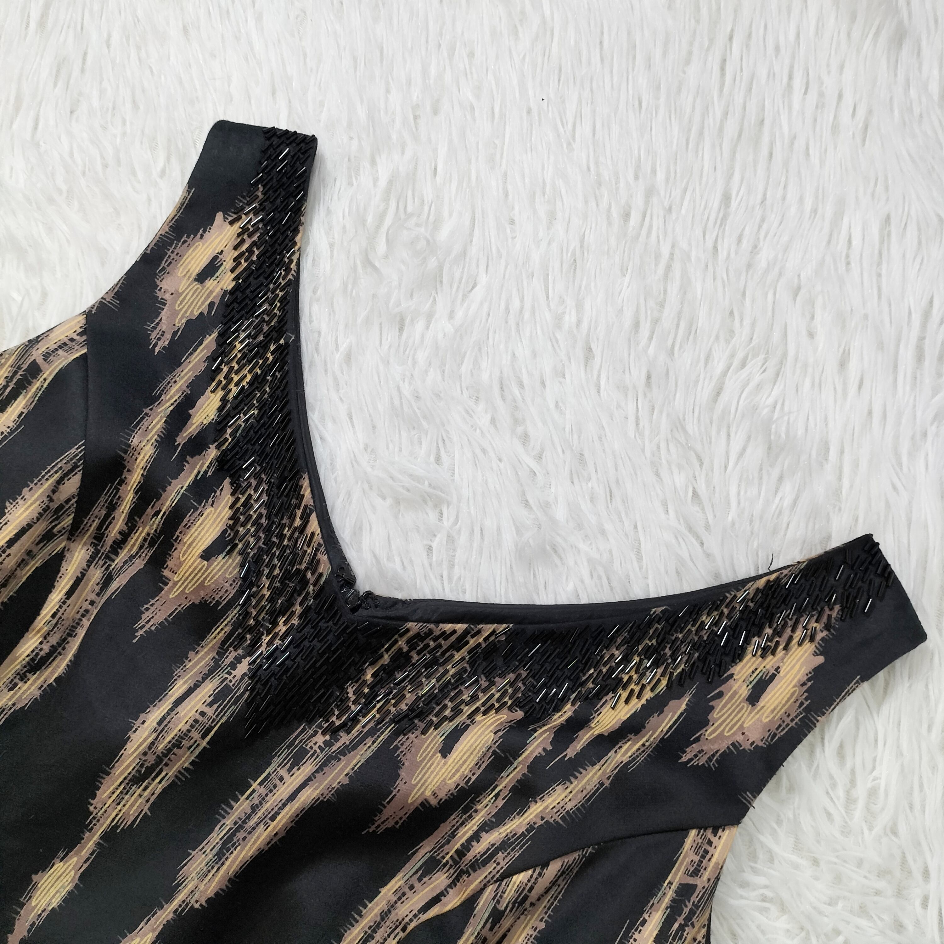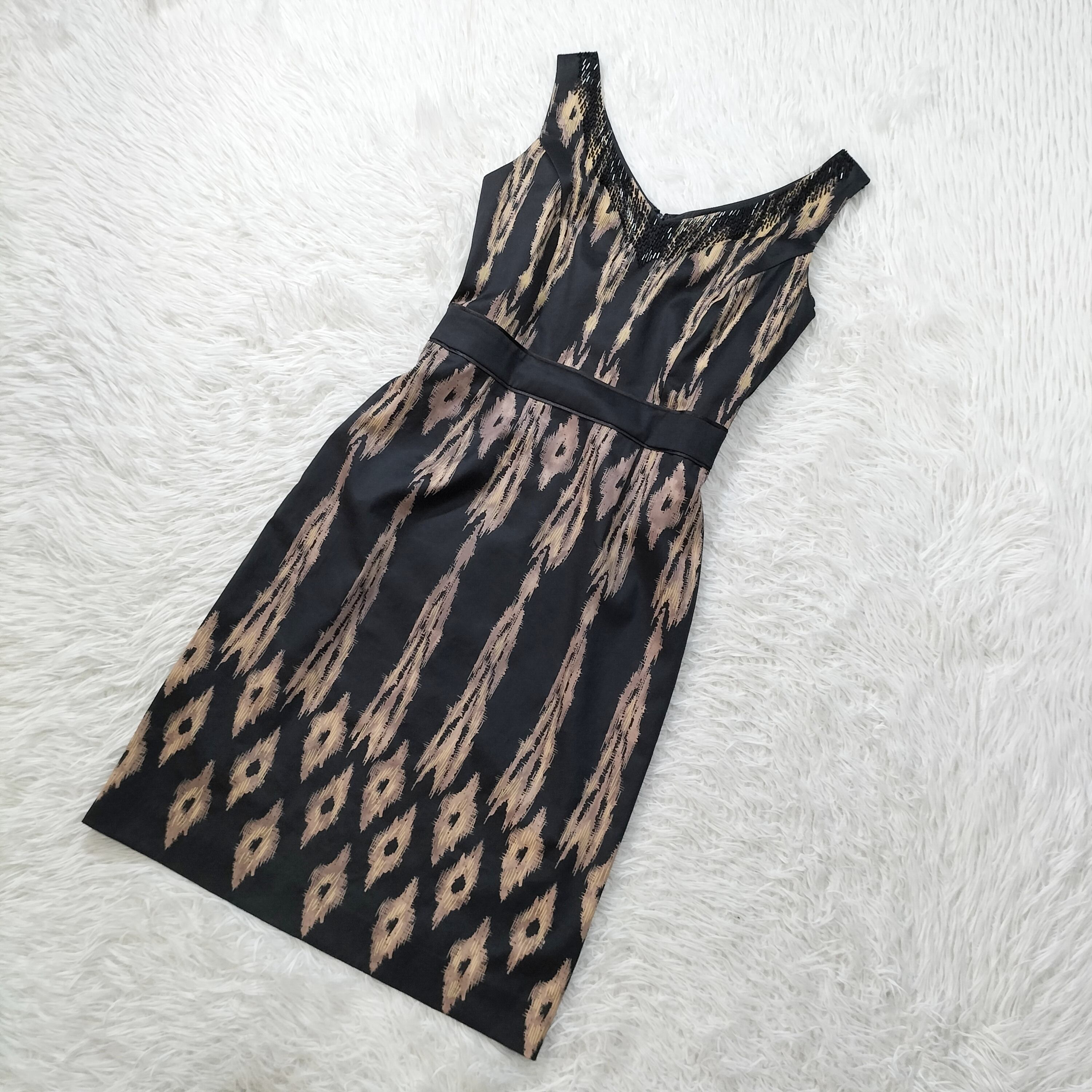 ノースリーブワンピース ひざ丈 ビジュー 総柄 バックジップ レディース