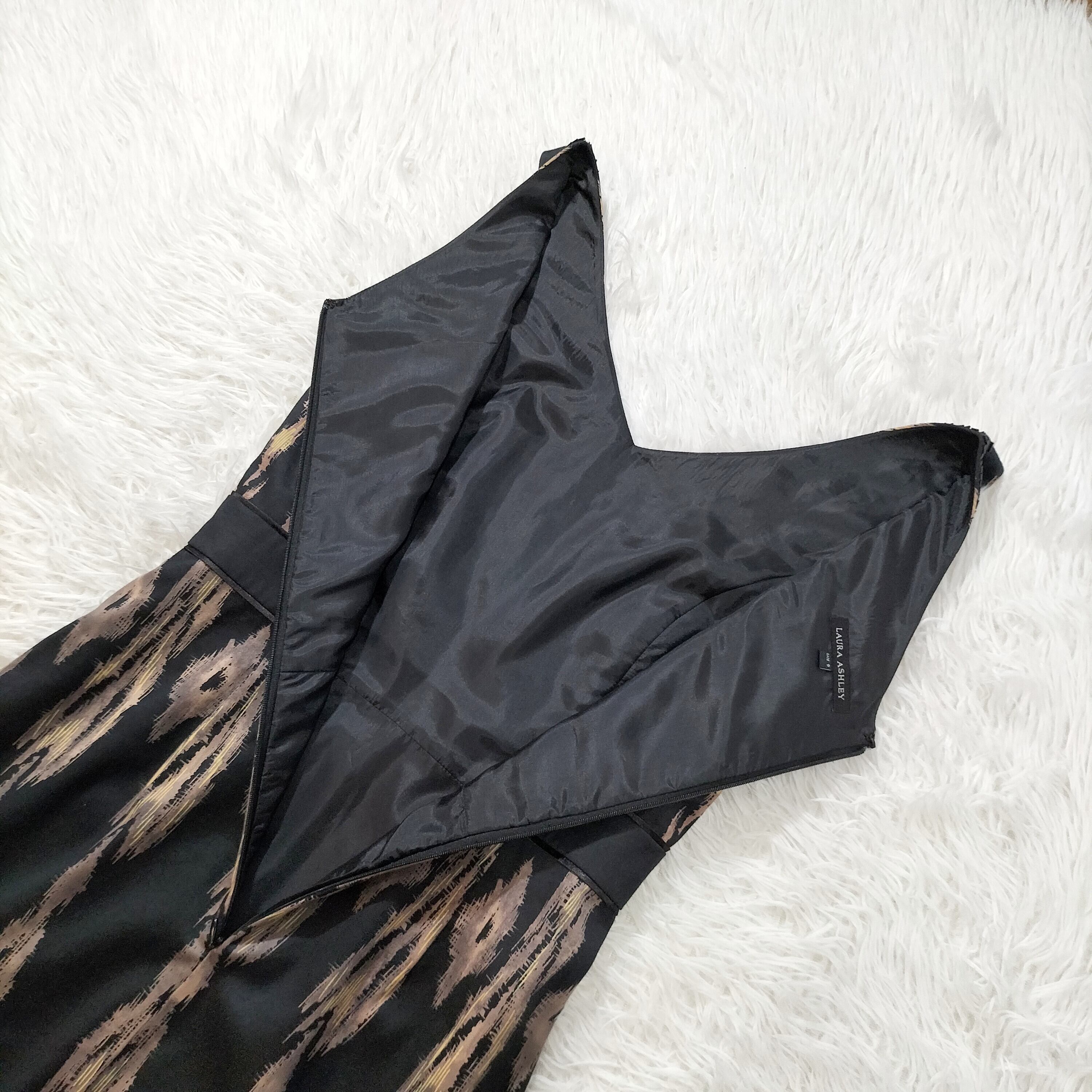 【訳あり】LAURA ASHLEY ローラアシュレイ ノースリーブワンピース ひざ丈 ビジュー 総柄 バックジップ 9号