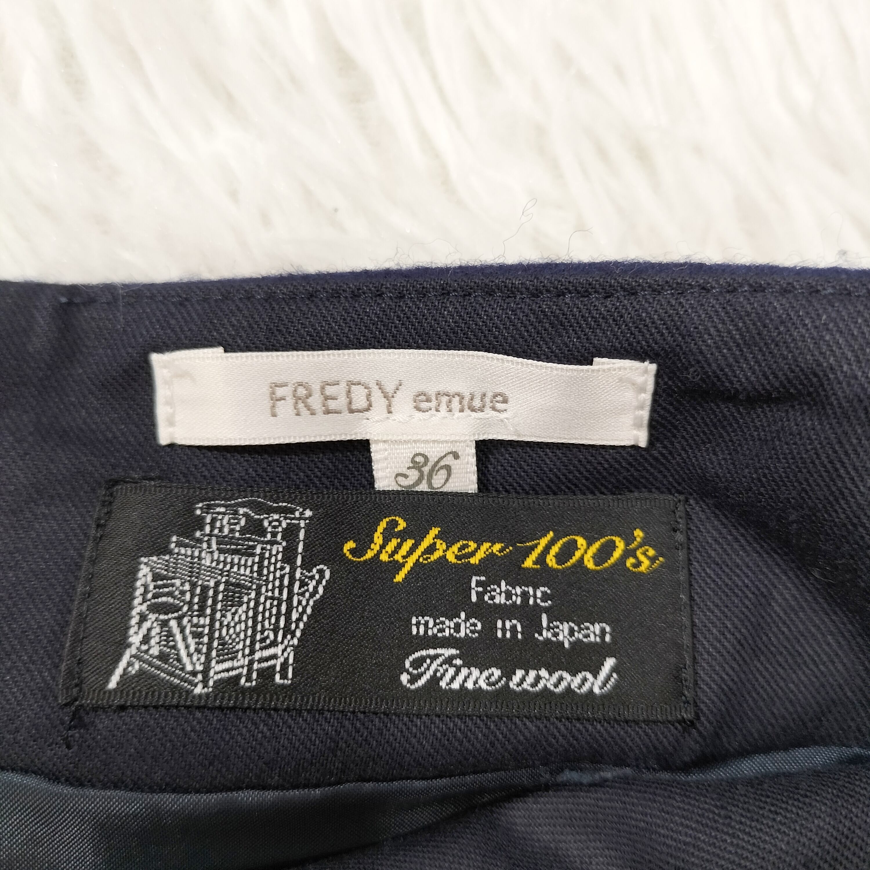 FREDY emue フレディエミュ ひざ丈スカート ビジネス ウール バックジップ ネイビー レディース 36 Sサイズ
