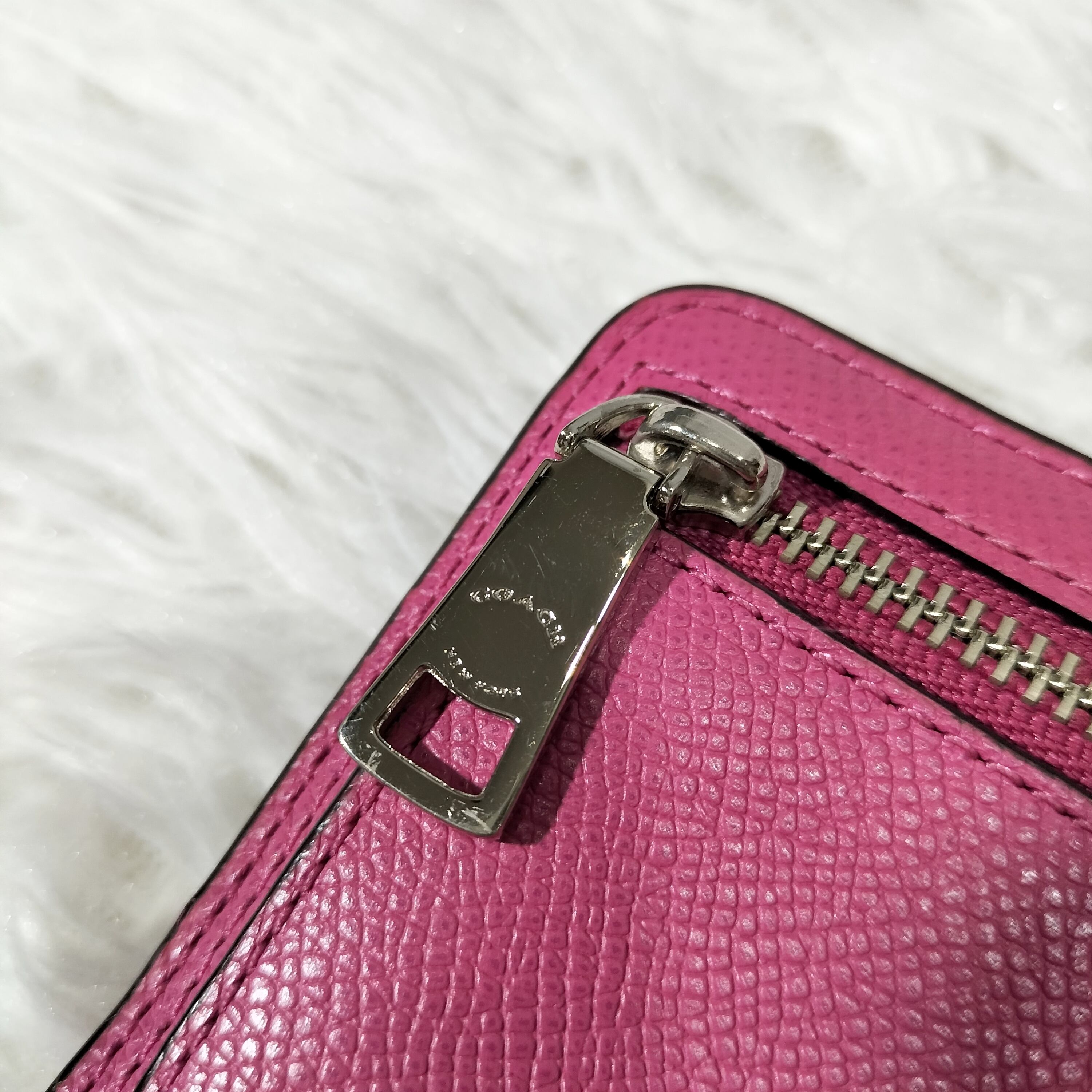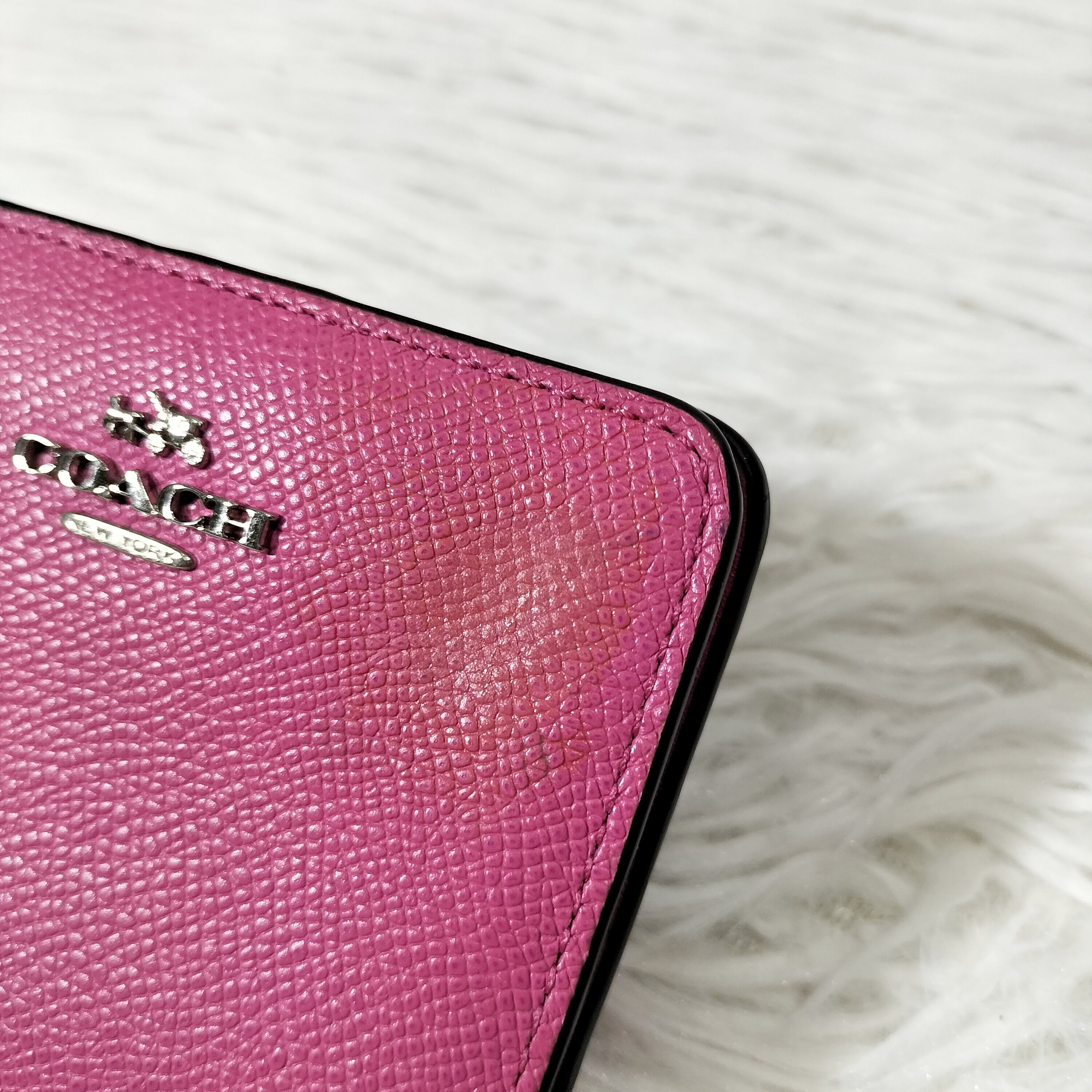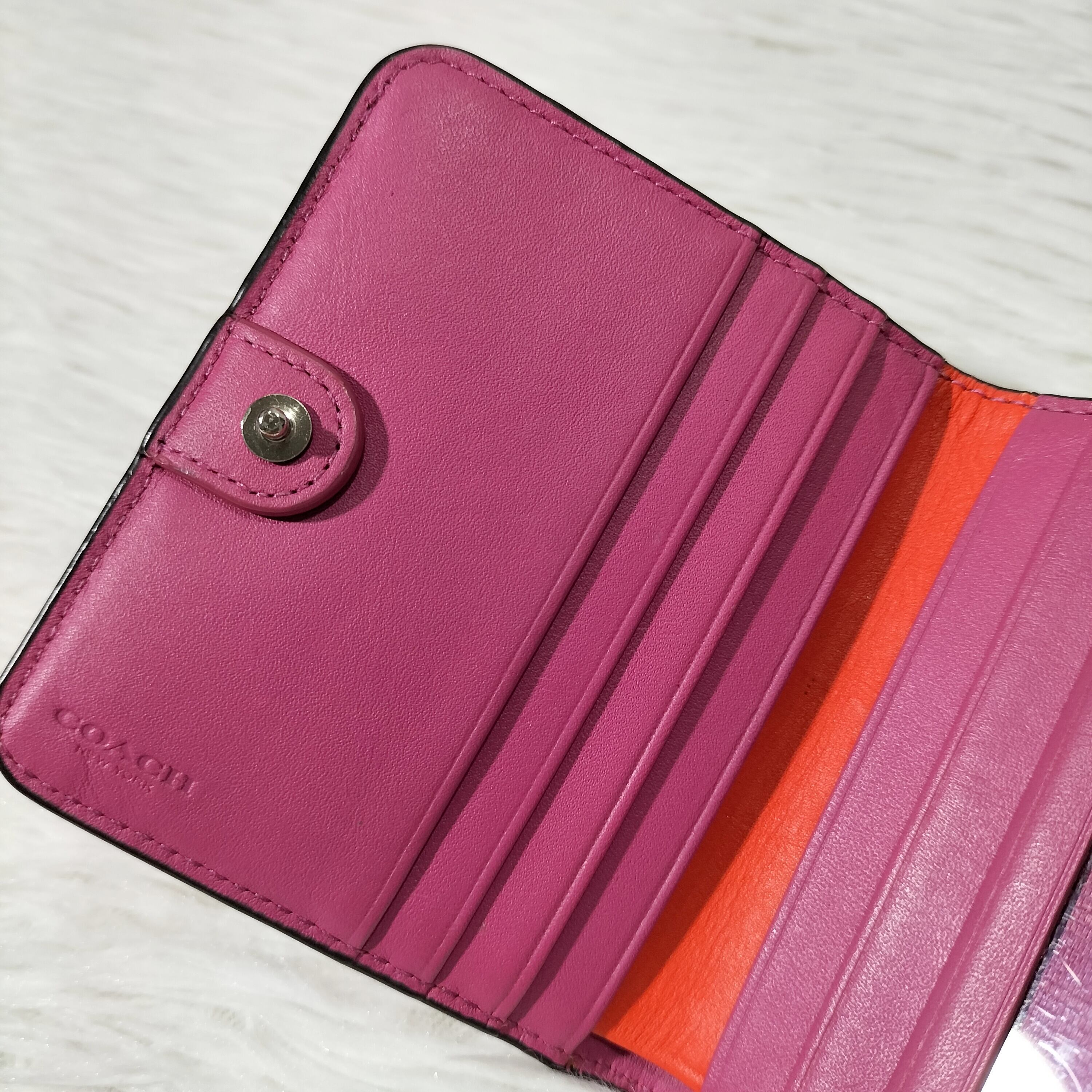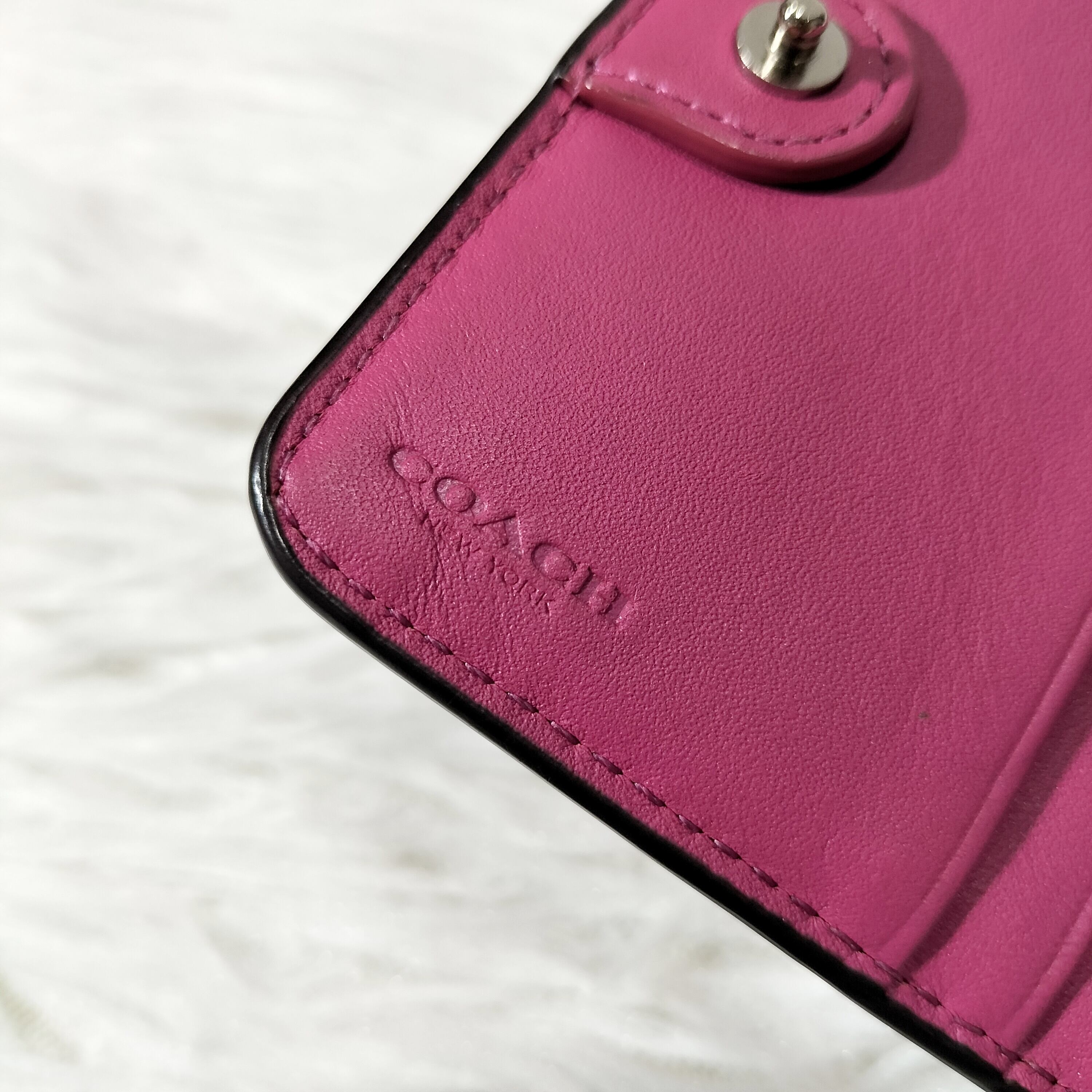 COACH(コーチ)の二つ折りウォレットです!ロゴデザインと可愛らしいピンクカラーが特徴で、女性に大人気のアイテムです。小さいサイズながら、カードやお札、小銭などの収納もしっかりでき、機能性も抜群です。