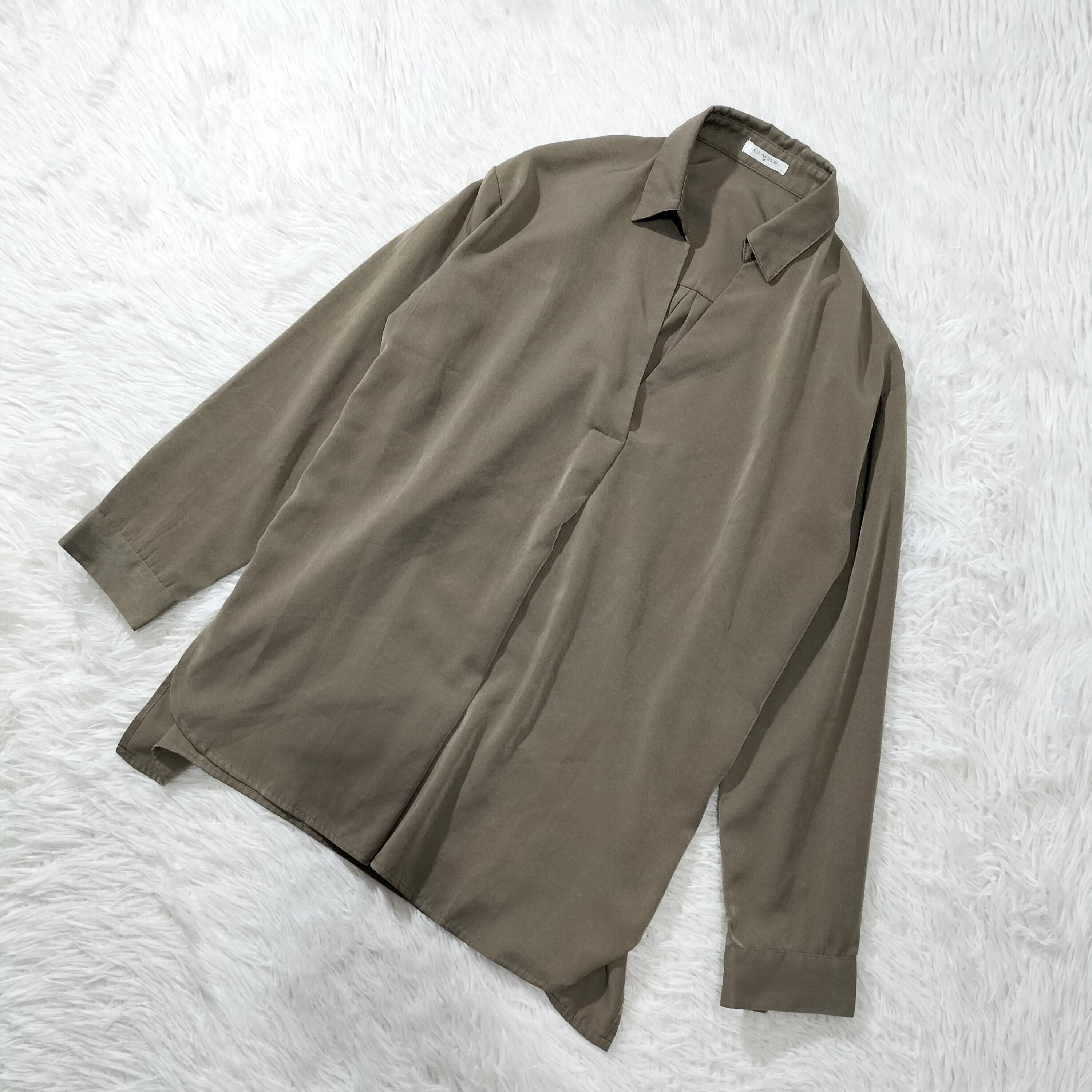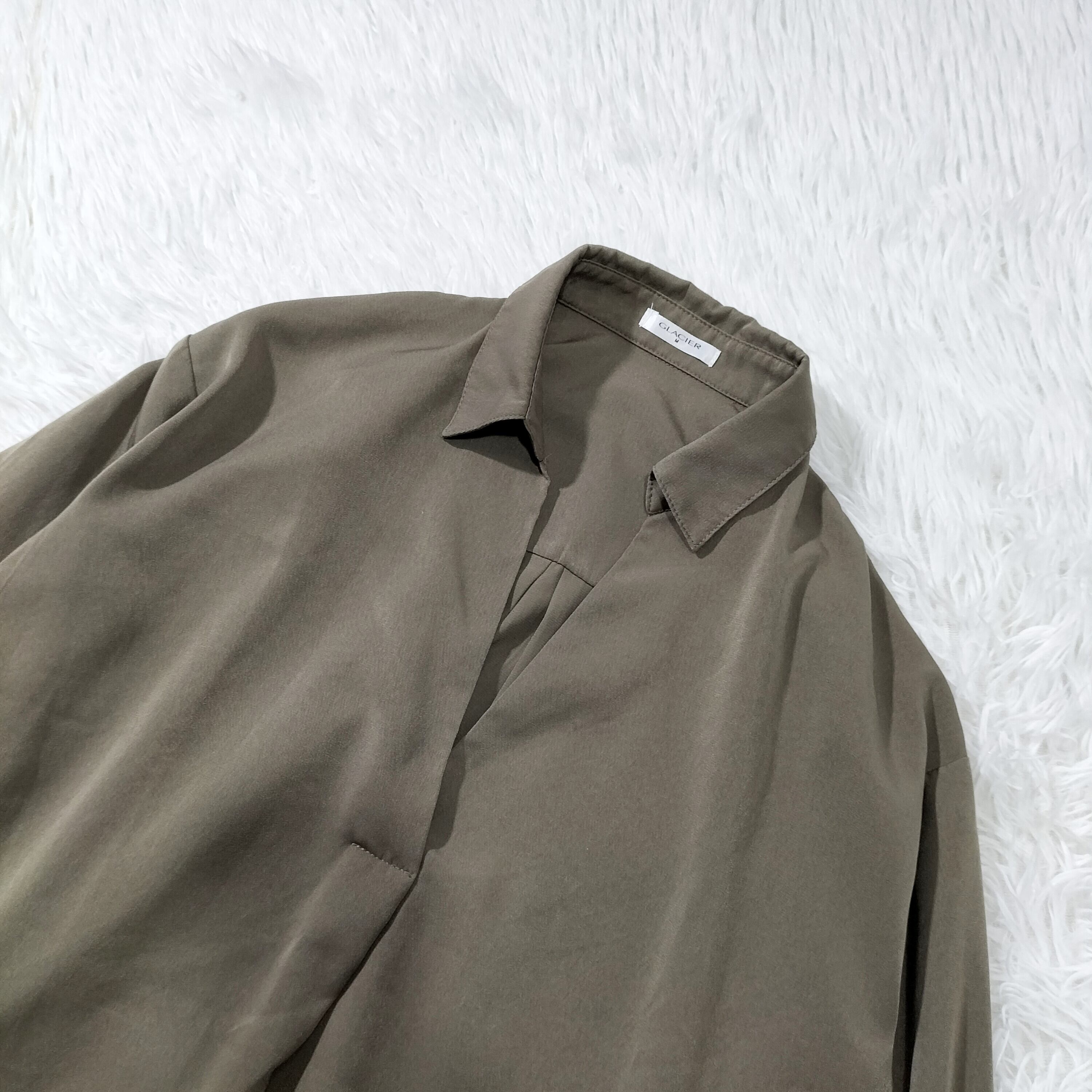 GLACIER グラシア スキッパーブラウス オーバーサイズ プルオーバー スリット 長袖 大人カジュアル レディース カーキ Mサイズ